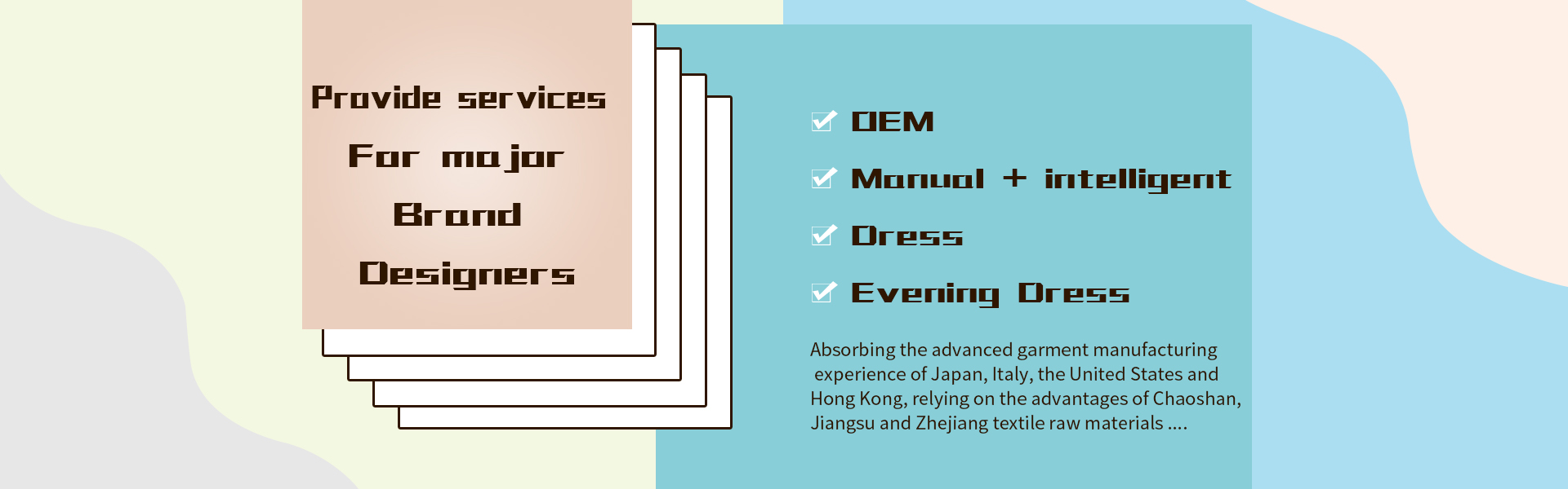 Shenzhen Ever-Sunrise Garment Co., Ltd., founded in 1991, is a wholly foreign-owned enterprise established by  Hong Kong Huiyao International Trading Co., Ltd. it has completed an investment of 5 million US dollars in Shenzhen and Nantong clothing production bases. mainly engaged in international, domestic first-and second-tier mainstream brands of all kinds of women's fashion processing and export business.